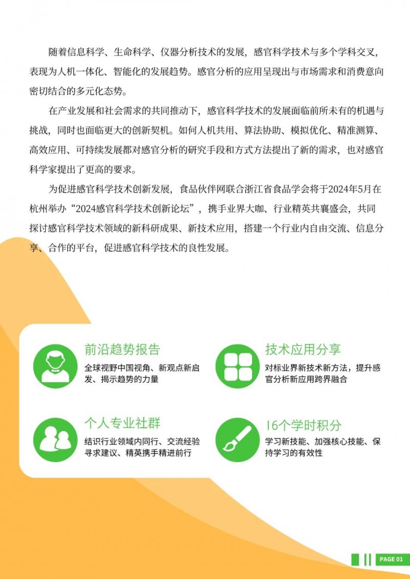 為促進(jìn)感官科學(xué)技術(shù)創(chuàng)新發(fā)展,食品伙伴網(wǎng)聯(lián)合浙江省食品學(xué)會將于2024年5月在杭州舉辦“2024感官科學(xué)技術(shù)創(chuàng)新論壇”,攜手業(yè)界大咖、行業(yè)精英共襄盛會,共同探討感官科學(xué)技術(shù)領(lǐng)域的新科研成果、新技術(shù)應(yīng)用,搭建一個行業(yè)內(nèi)自由交流、信息分享、合作的平臺,促進(jìn)感官科學(xué)技術(shù)的良性發(fā)展。