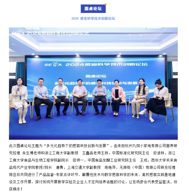 2024年5月15日,由食品伙伴網(wǎng)和浙江省食品學(xué)會聯(lián)合主辦,全球化學(xué)感官研究聯(lián)盟(GCCR)、湖北省照明學(xué)會、西安交通大學(xué)第二附屬醫(yī)院、上海盛評檢測技術(shù)有限公司協(xié)辦,濟南智感分析儀器有限公司、煙臺食邦信息科技有限公司、感知網(wǎng)共同支持的“2024 感官科學(xué)技術(shù)創(chuàng)新論壇”在杭州萬信瑞鉑酒店盛大開幕!