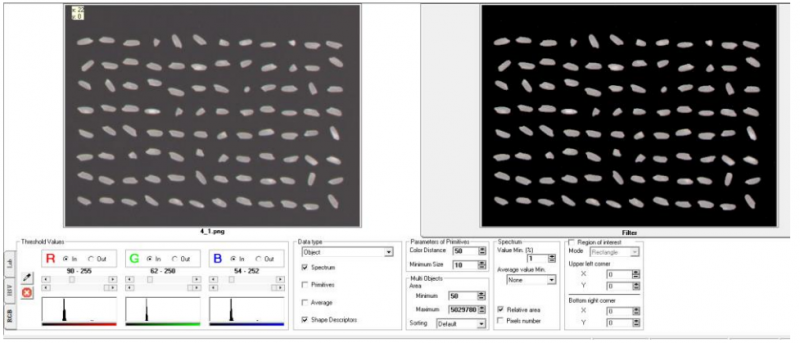 大米的視覺質(zhì)量,一般是關(guān)注其白堊米的含量,以及米粒的完整度等,使用 IRIS 電子眼,可基于視覺和形狀對(duì)大米的視覺質(zhì)量進(jìn)行區(qū)分。