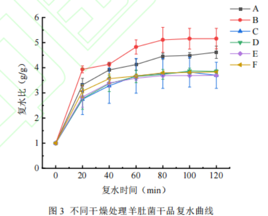 不同干燥處理羊肚菌復水速率