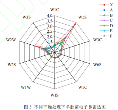 五、不同干燥處理下羊肚菌樣品電子鼻分析